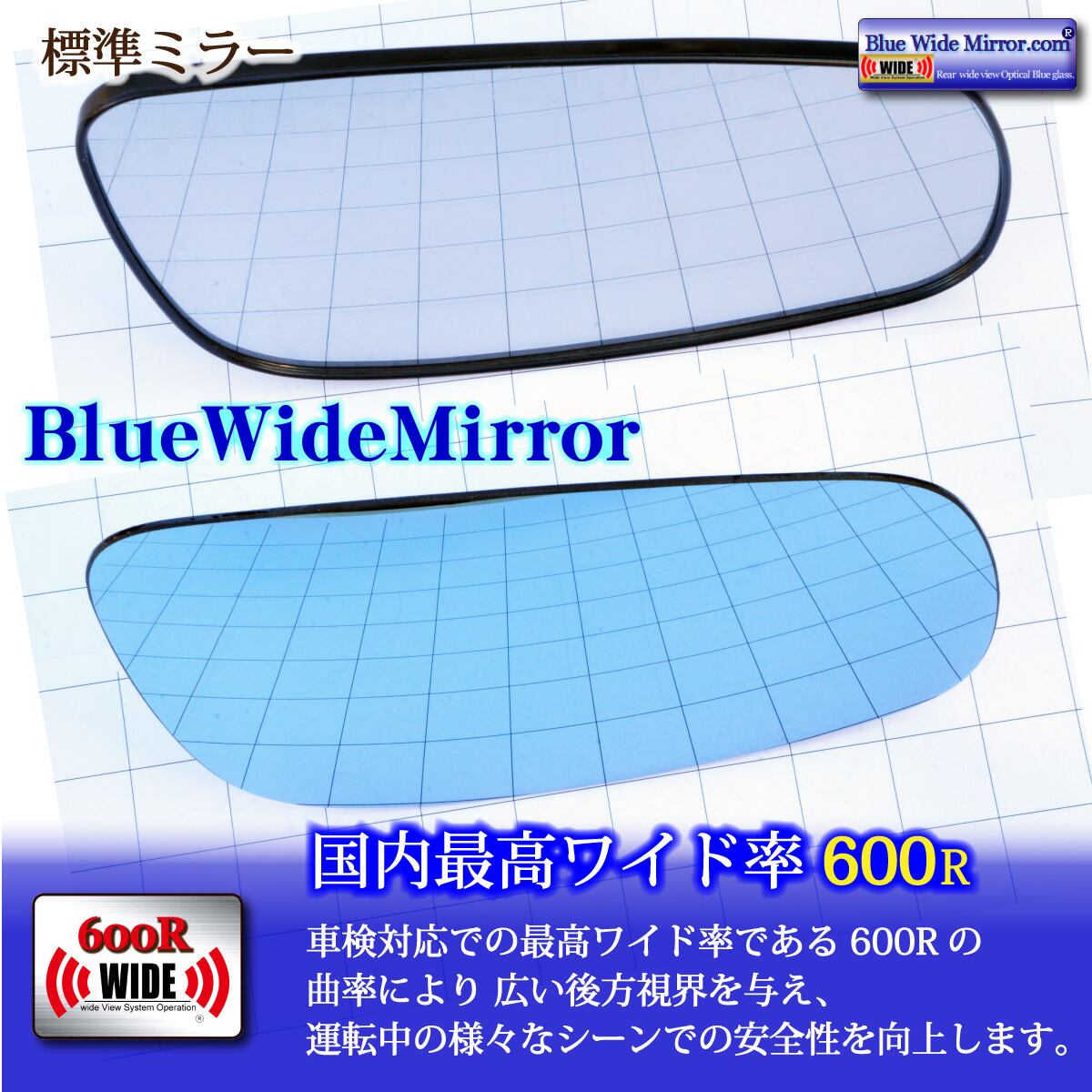 後続車のヘッドライトの眩しさを軽減しつつも良好な視認性を確保するブルー、車検適合で最大限にワイドな後方視界を確保する600Rの曲率。